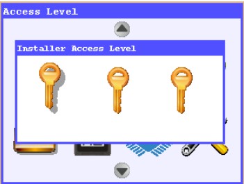 Para seguir interactuando con la consola tenemos que cambiar nuestro nivel de acceso mediante la tecla «tools«, al hacerlo llegaremos a esta pantalla. Para seleccionar uno de los niveles de acceso nos desplazaremos con las flechas laterales. Se pueden establecer códigos de acceso a cada nivel, pero por defecto será 00000 en todos.
